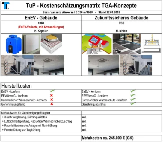 Der TUP-Campus diente als Grundlage, um das All-in-Paket mit den Minimalanforderungen der Energieeinsparungsverordnung (kurz EnEV) zu vergleichen.