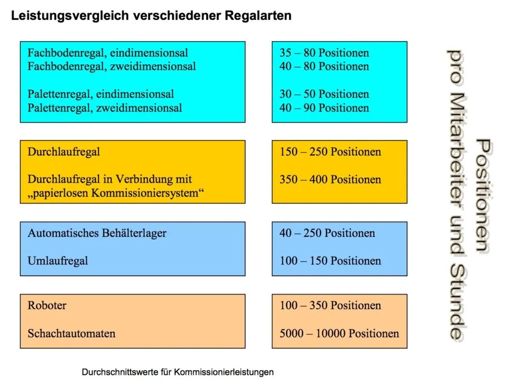 Kommissionierleistung bezogen auf unterschiedliche Regalarten - das digitalisierte Picken zeigt bessere Leistung.